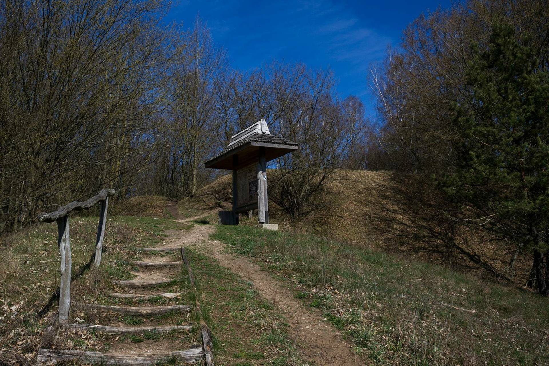 Castle Hill (228.1 m above sea level) in Szurpiły is one of the most interesting archaeological sites in Poland, picturesquely situated among four lakes. In the 9th century, the Yotvingians built a massive defensive hill fort here, complete with double ramparts, a bridge, a water canal, and other fortifications. It served as a place of refuge while life unfolded in the surrounding settlements. The complex's greatest development occurred in the 13th century; sources from this period mention the Yatvingian magnate Sjurpa , from whom Szurpiły likely derives its name. Although the conquest of Yatvingia by the Teutonic Knights in 1283 ended its independence, traces of settlements survived until the 14th century. Today, Castle Hill can be visited via an educational trail that leads through the most important elements of the former hill fort.