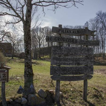 The Jegliniec hillfort is located atop the Pilekalnis moraine hill (224.4 m above sea level), on the Polish-Lithuanian border, near a farmstead. The oval courtyard (approximately 40 x 20 m), divided by a rampart into northern and southern sections, is surrounded by massive ramparts, with a possible gate and defensive tower to the south. A natural, modified causeway leads to the hillfort from the north. Traces of additional fortifications are visible at its foot. The structure, dating from the 10th–13th centuries, was built on older traces of settlement from the Iron Age and the Roman period. Known in literature since the late 18th century as Jegliniec. Although privately owned, the hillfort is open to the public.