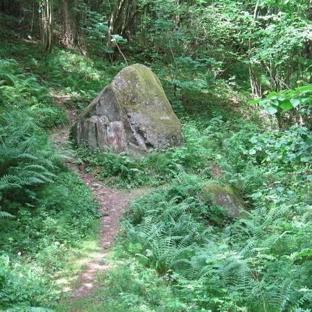 Mokas is an irregular granite pyramid measuring 3.3 x 3.6 m and 2.8 m high. The date 1866 and a cross are engraved on the west side of the stone; on the southeast side - the date 1813, and besides it, the letters M and J in the north, L and M in the east. A stone measuring 1.1 x 1.4 m still lies below on the slope of Moko - the son of Mokiukas. According to people’s stories, Mokienė lurks at the bottom of Lake Tauragnai, where she is caught by fishermen’s nets from time to time. Legend has it that there was once a man named Mokas who lived here and had a wife and a son. The hardworking Mokas family worked for the whole family. However, frustrated by people’s laziness, Mokas himself stopped working. Then people began to scold him. So, he decided to move across Lake Tauragnas and told the family members to swim back without turning. However, the wife turned back and drowned. Mokas and his son swam across the lake, but both were so saddened by the drowned wife and mother that they turned to stone... Šeimaties Mokai is one of the few Lithuanian sanctuaries that are characterized by extraordinary knowledge and wisdom. Not long ago, residents sent know-nothing people to these stones, saying: “Go to Mokas to learn!” The practise of teaching in the holy place was shrouded in white religious mysteries, directly related to rites and sacrifices. The dates of the 19th century carved on the stone, as well as the sign of the cross the size of a spring, show that the Šeimatis sanctuary was active until the beginning of the 20th century; later turned into a place visited by travellers.