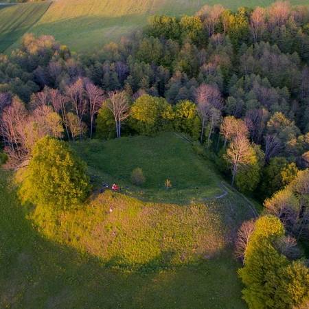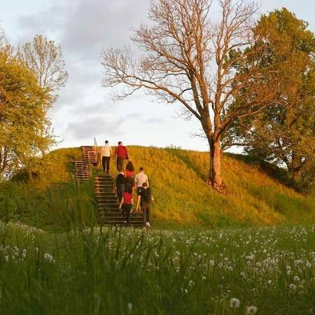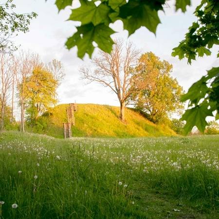 Piliakalnių Hillfort is one of the most impressive archaeological monuments in the Marijampolė district, commemorating a settlement and a castle with a forecourt that existed here from the 5th to the 12th centuries. According to legends, this was possibly the site of Duke Margiris’s castle – a theory supported by the nearby villages of Margai and Peleniai.