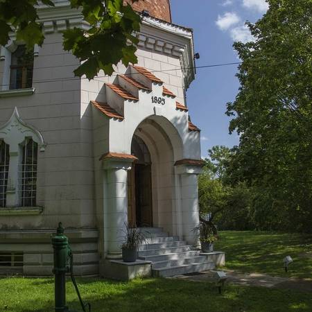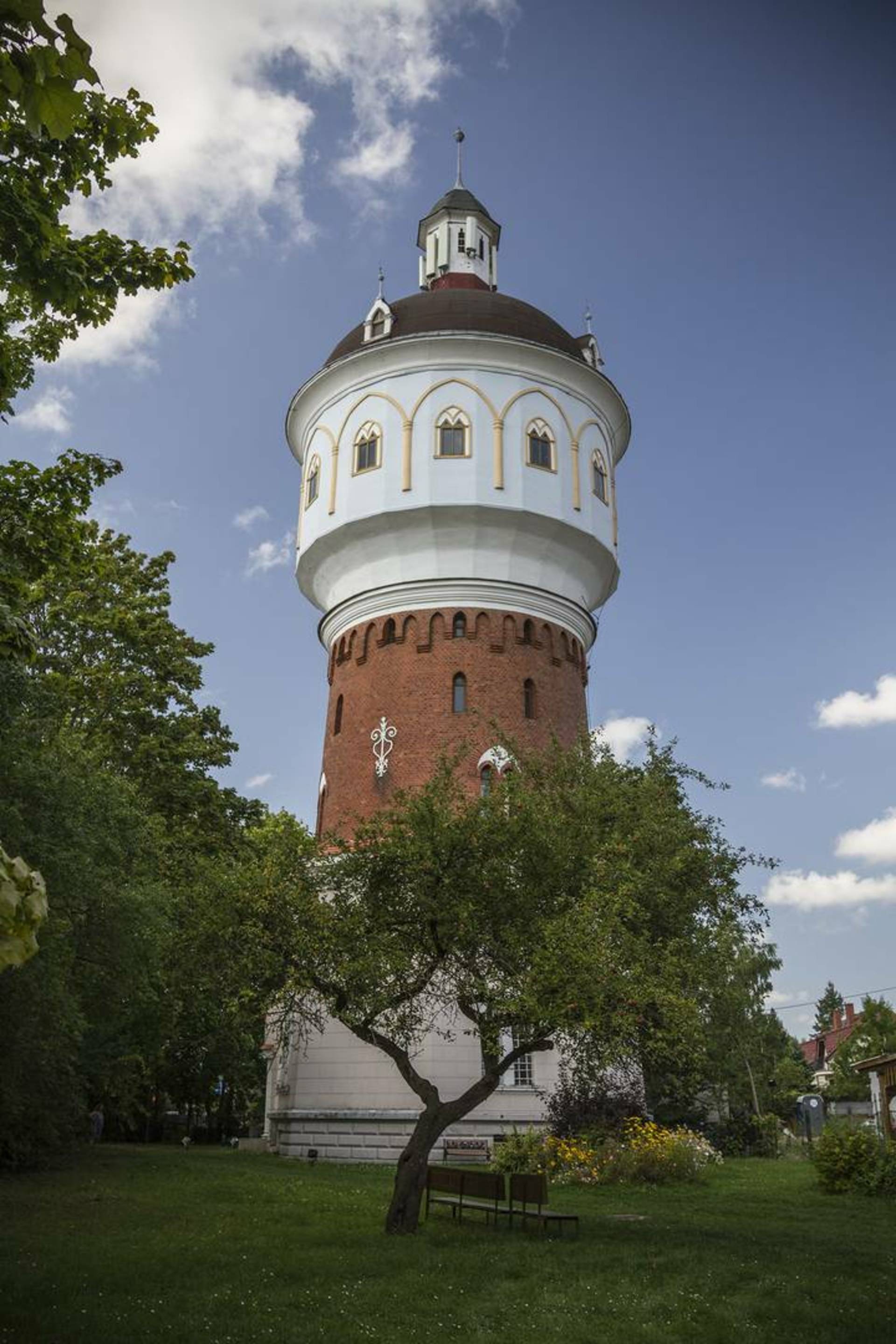 The Ełk Water Tower is one of the city's most beautiful and recognizable structures, today considered its architectural symbol. The five-story structure is distinguished by its interesting form – the lower floors are designed on an octagonal plan and decorated with rustication and a massive entrance portal. The building is crowned by a striking domed roof with dormers and a lantern.