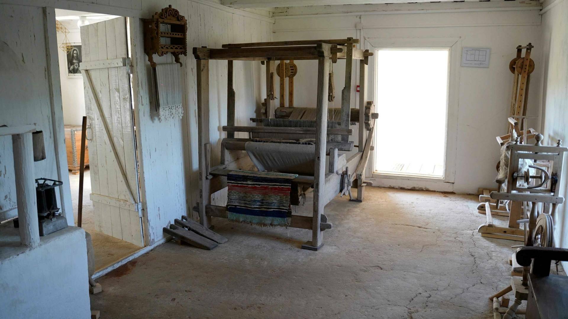W przestrzeniach chaty można zobaczyć zabytkowe meble, przedmioty codziennego użytku oraz imponujący sprzęt rolniczy – od narzędzi do produkcji gontów po unikalną młockarnię. Największym skarbem jest olbrzymi, mający 8 metrów długości tłocznia do oleju, niegdyś używana do wyciskania oleju lnianego.